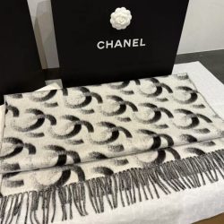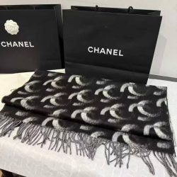 Chanel Black And White Cashmere Blend Scarf