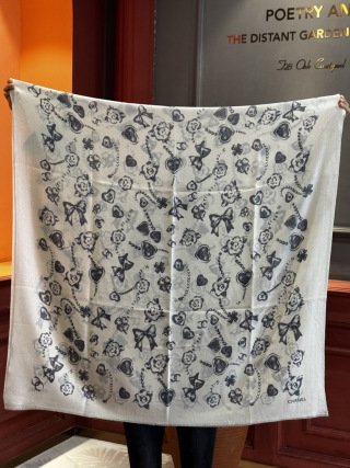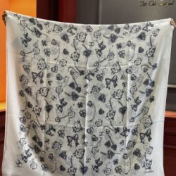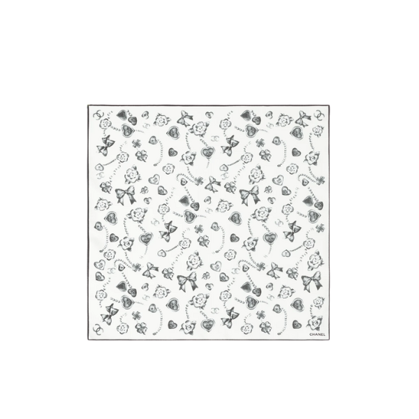 Chanel Square Scarf Twill Silk Black & White