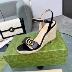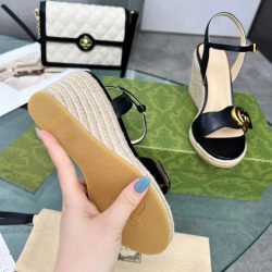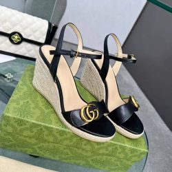 Gucci Leather Wedge Espadrille Sandals Black 8Cm – PurseAura
