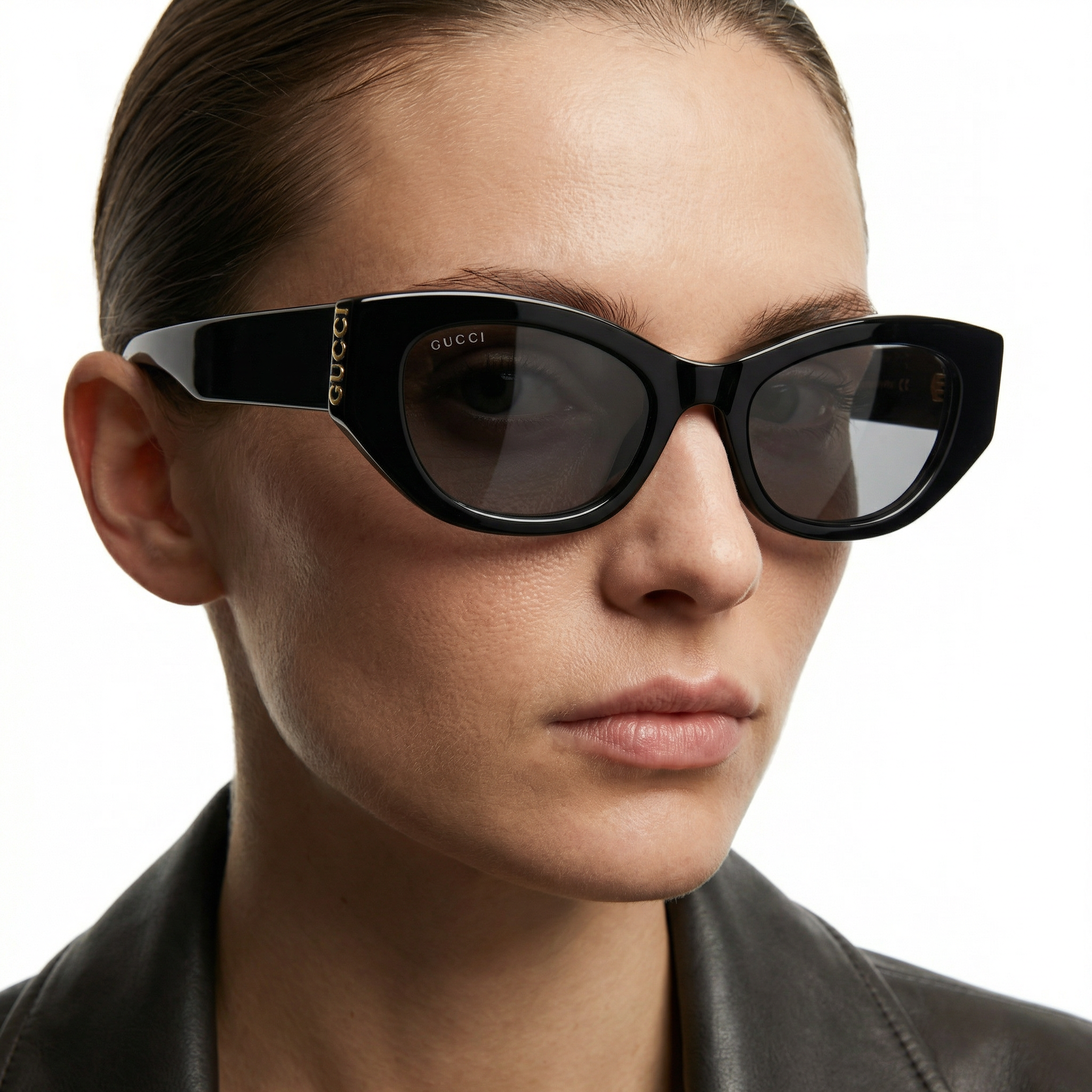 - Shiny black acetate frame with Gucci logo