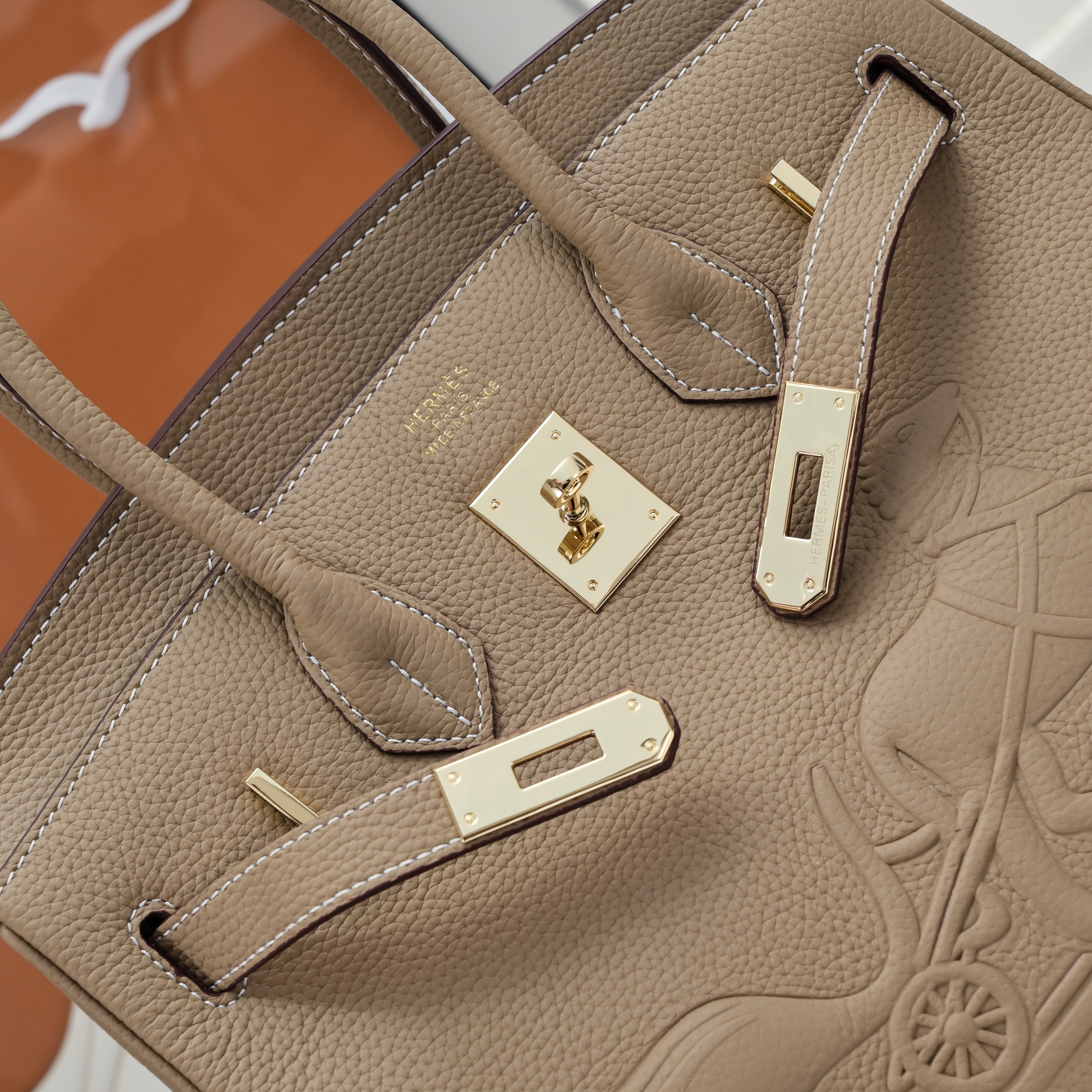 Hermes Birkin 30CM Taupe Horse Draw Carriage Embossed