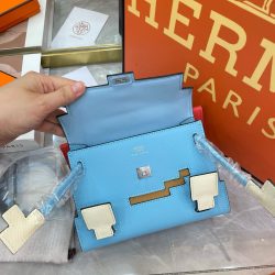 Hermès Kelly 20 Doll Picto Celeste Epsom Leather Palladium Hardware