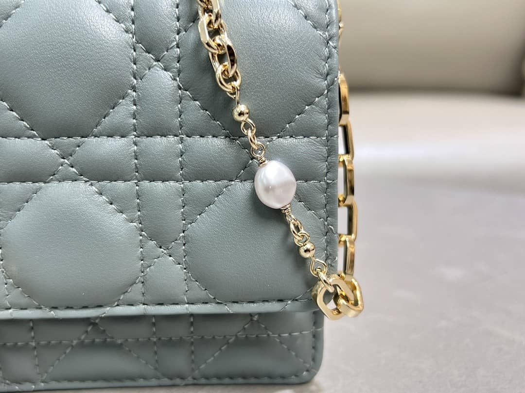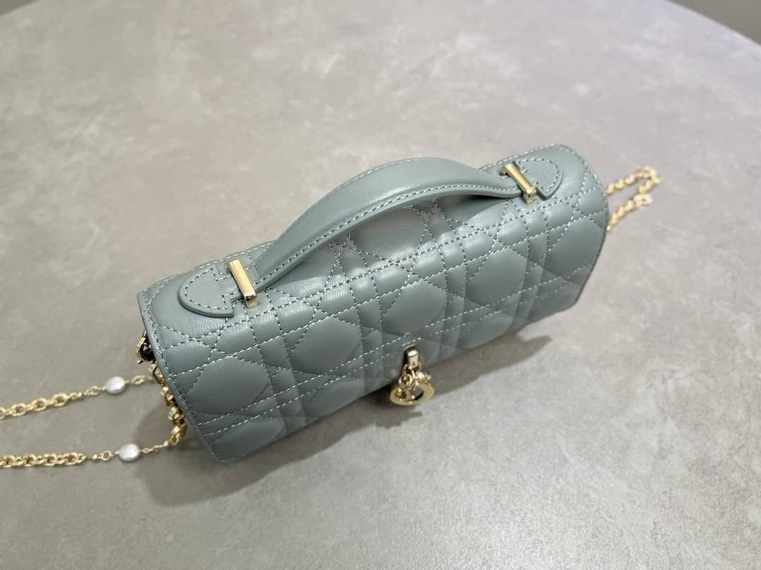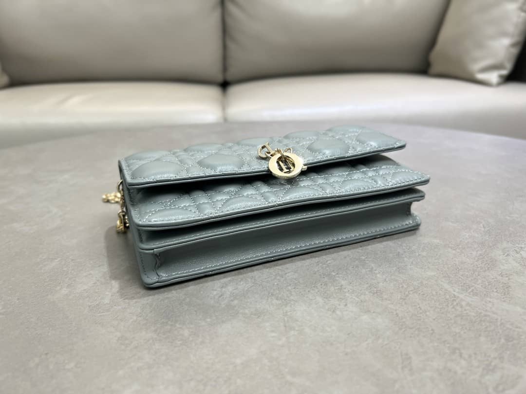 The Lady Dior pouch is a compact yet spacious companion. Crafted in cloud blue lambskin with Cannage stitching, it is embellished with a ‘D.I.O.R.’ charm. Thanks to its numerous compartments, the functional accessory can accommodate all the daily essentials. Its jewel chain allows it to be worn over the shoulder or crossbody.