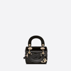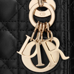 The Lady Dior bag embodies the House’s vision of elegance and beauty. Crafted in black lambskin with signature Cannage topstitching, its iconic silhouette is embellished with a ‘D.I.O.R.’ charm. The micro style can accommodate all the daily essentials and features an adjustable and removable shoulder strap, allowing it to be carried by hand, worn over the shoulder or crossbody.
