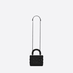 The Lady Dior handbag epitomizes the House’s vision of elegance and beauty. Sleek and refined, the timeless yet relevant style is crafted in black ultramatte calfskin with Cannage stitching, creating the instantly recognizable quilted texture. The tonal metal ‘D.I.O.R.’ charms further embellish and illuminate its silhouette. Featuring a removable chain shoulder strap, the miniature Lady Dior bag can be carried by hand, worn over the shoulder or crossbody as an ideal evening companion.