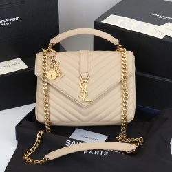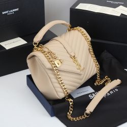 Saint Laurent College Medium Chain Bag In Quilted Leather Beige 24Cm 600279Brm072721