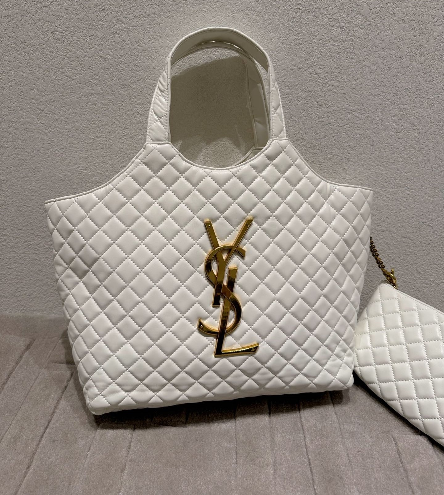 Saint Laurent Icare Shopping Bag In Quilted Lambskin White 40Cm – PurseAura